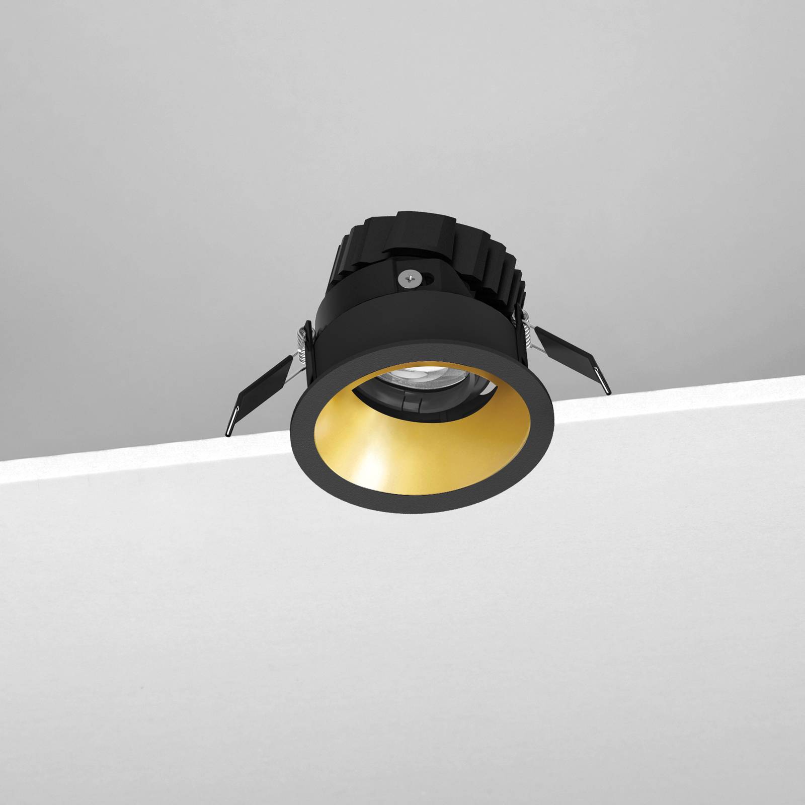 Corpo in alluminio pressofuso. Cornice in alluminio verniciato bianco o nero, o cornice trimless per controsoffitti in cartongesso. Riflettore in policarbonato
