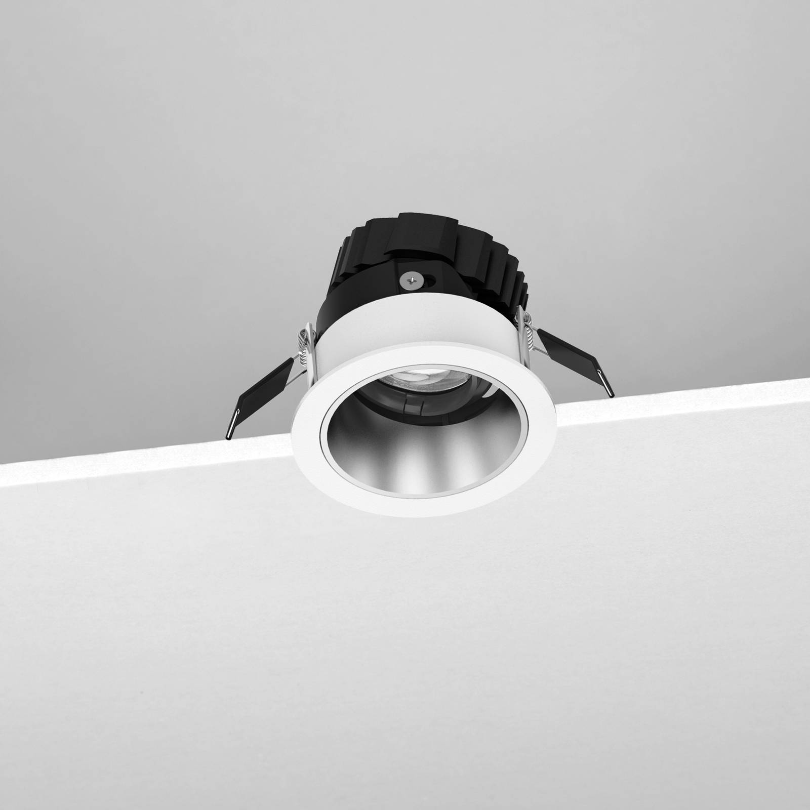 Corpo in alluminio pressofuso. Cornice in alluminio verniciato bianco o nero, o cornice trimless per controsoffitti in cartongesso. Riflettore in policarbonato