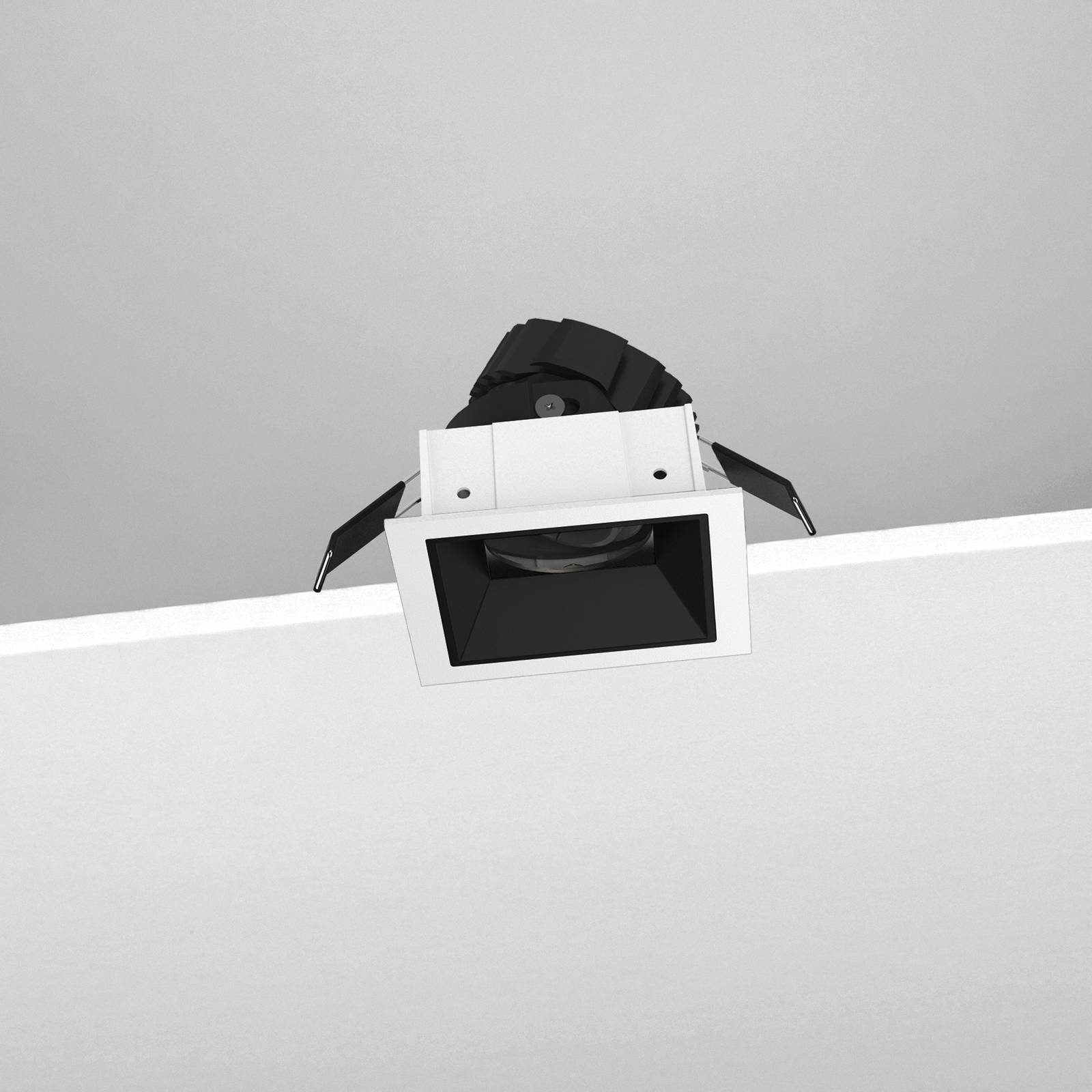 Corpo in alluminio pressofuso. Cornice in alluminio verniciato bianco o nero, o cornice trimless per controsoffitti in cartongesso. Riflettore in policarbonato