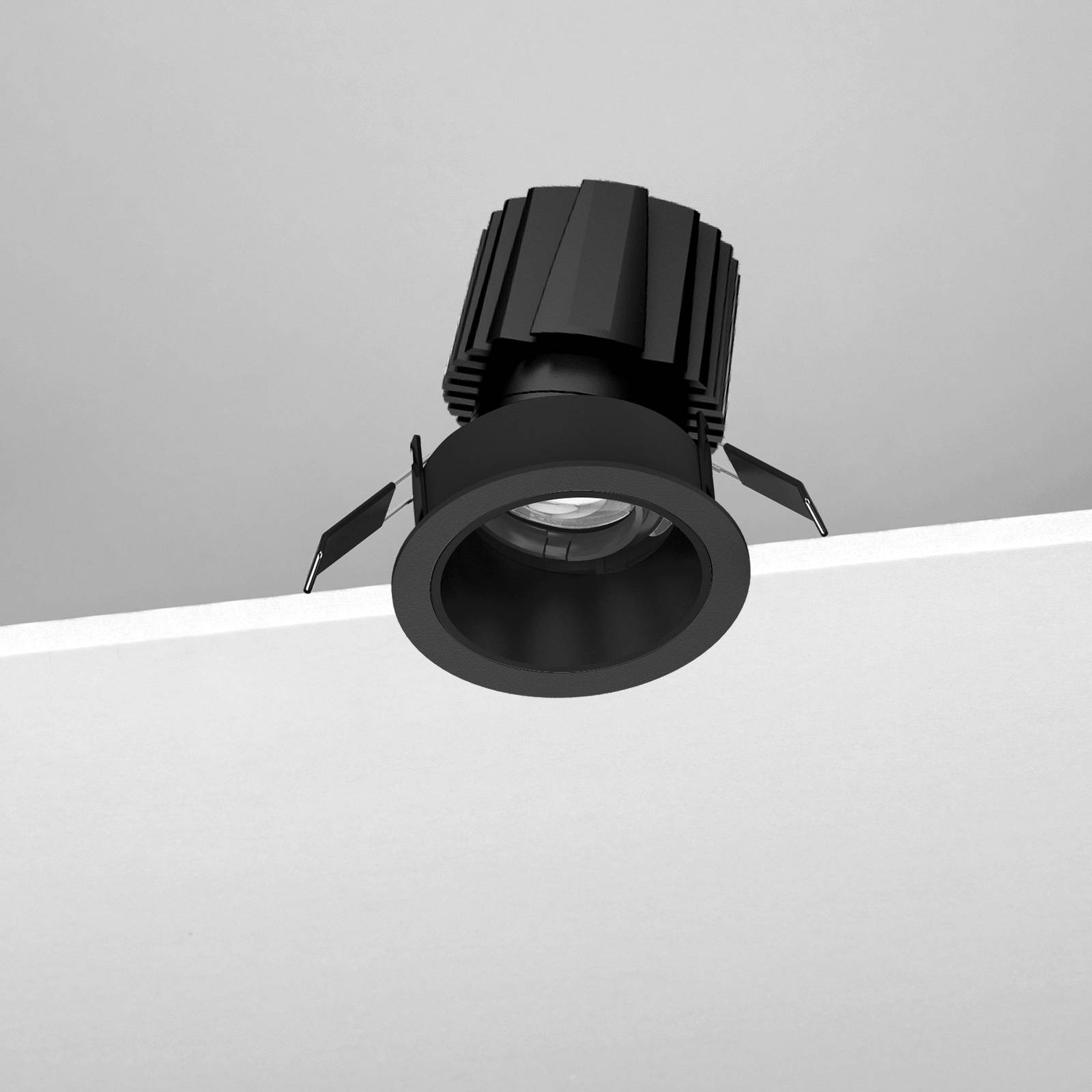 Corpo in alluminio pressofuso. Cornice in alluminio verniciato bianco o nero, o cornice trimless per controsoffitti in cartongesso. Riflettore in policarbonato
