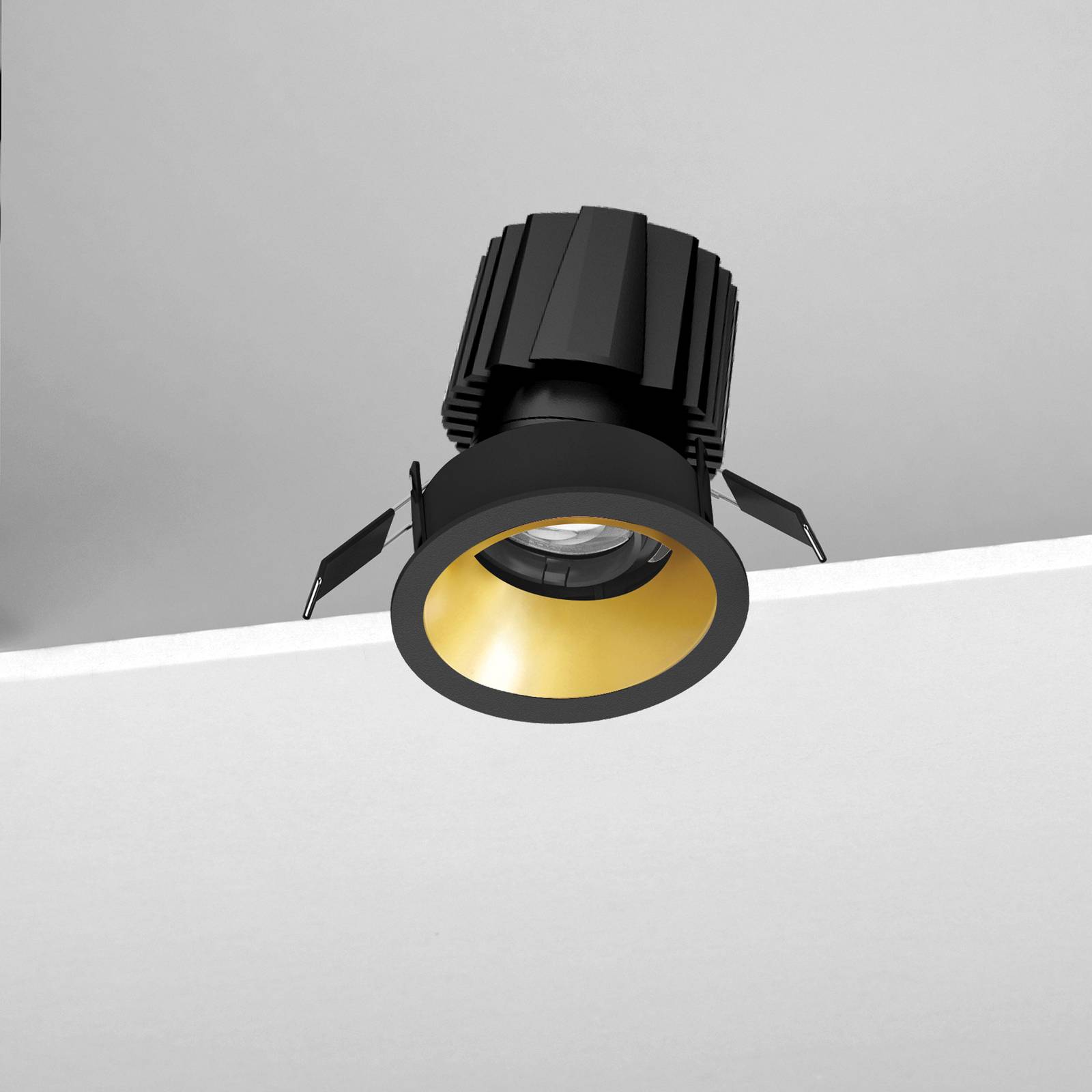 Corpo in alluminio pressofuso. Cornice in alluminio verniciato bianco o nero, o cornice trimless per controsoffitti in cartongesso. Riflettore in policarbonato