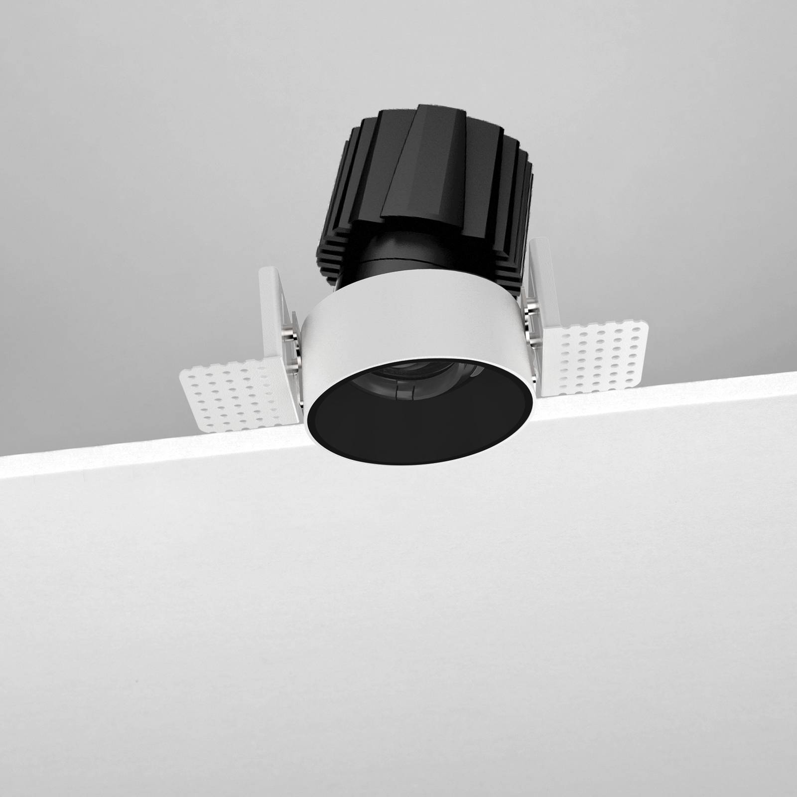 Corpo in alluminio pressofuso. Cornice in alluminio verniciato bianco o nero, o cornice trimless per controsoffitti in cartongesso. Riflettore in policarbonato
