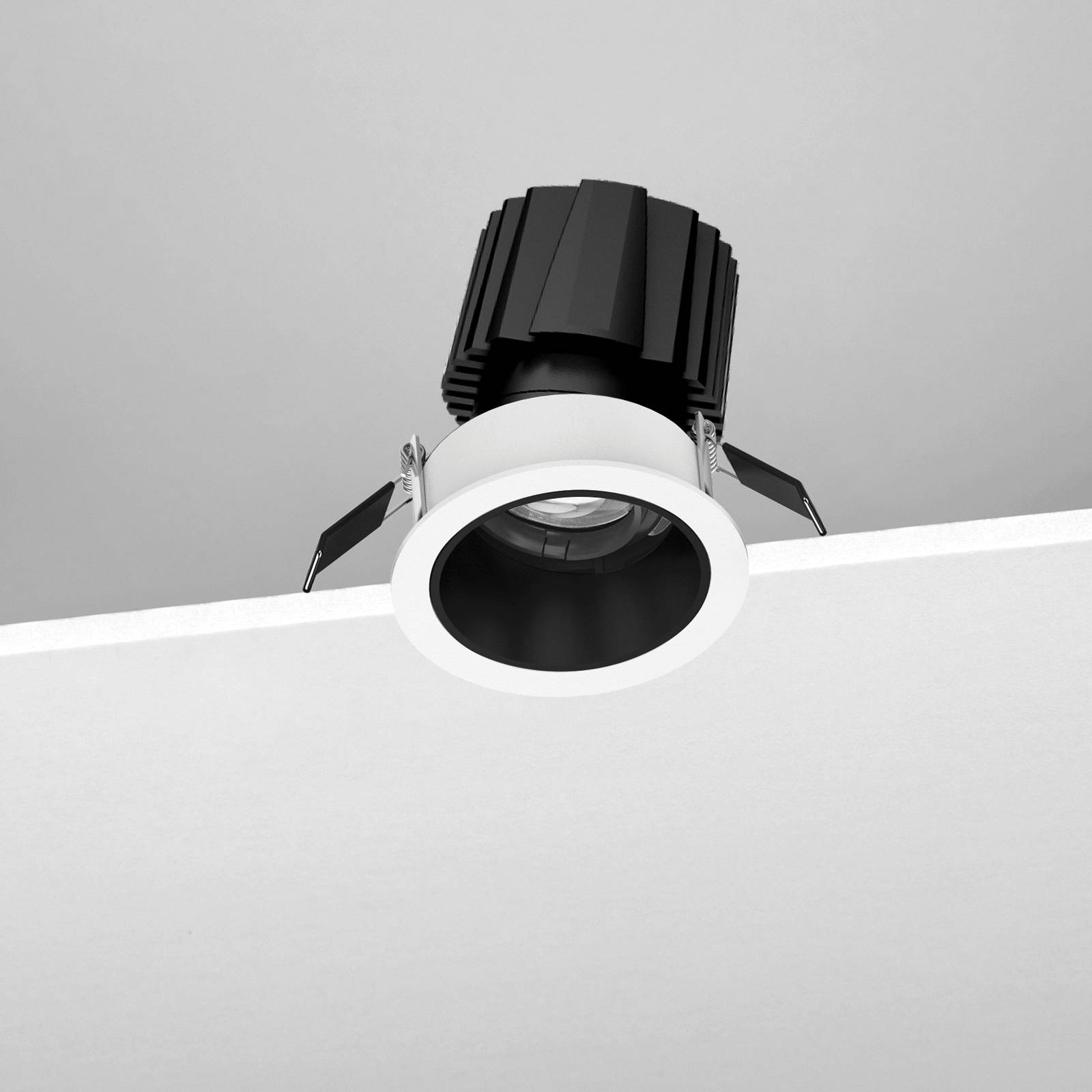 Corpo in alluminio pressofuso. Cornice in alluminio verniciato bianco o nero, o cornice trimless per controsoffitti in cartongesso. Riflettore in policarbonato