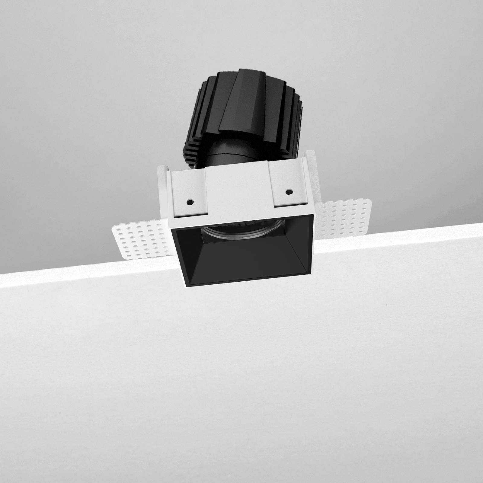 Corpo in alluminio pressofuso. Cornice in alluminio verniciato bianco o nero, o cornice trimless per controsoffitti in cartongesso. Riflettore in policarbonato