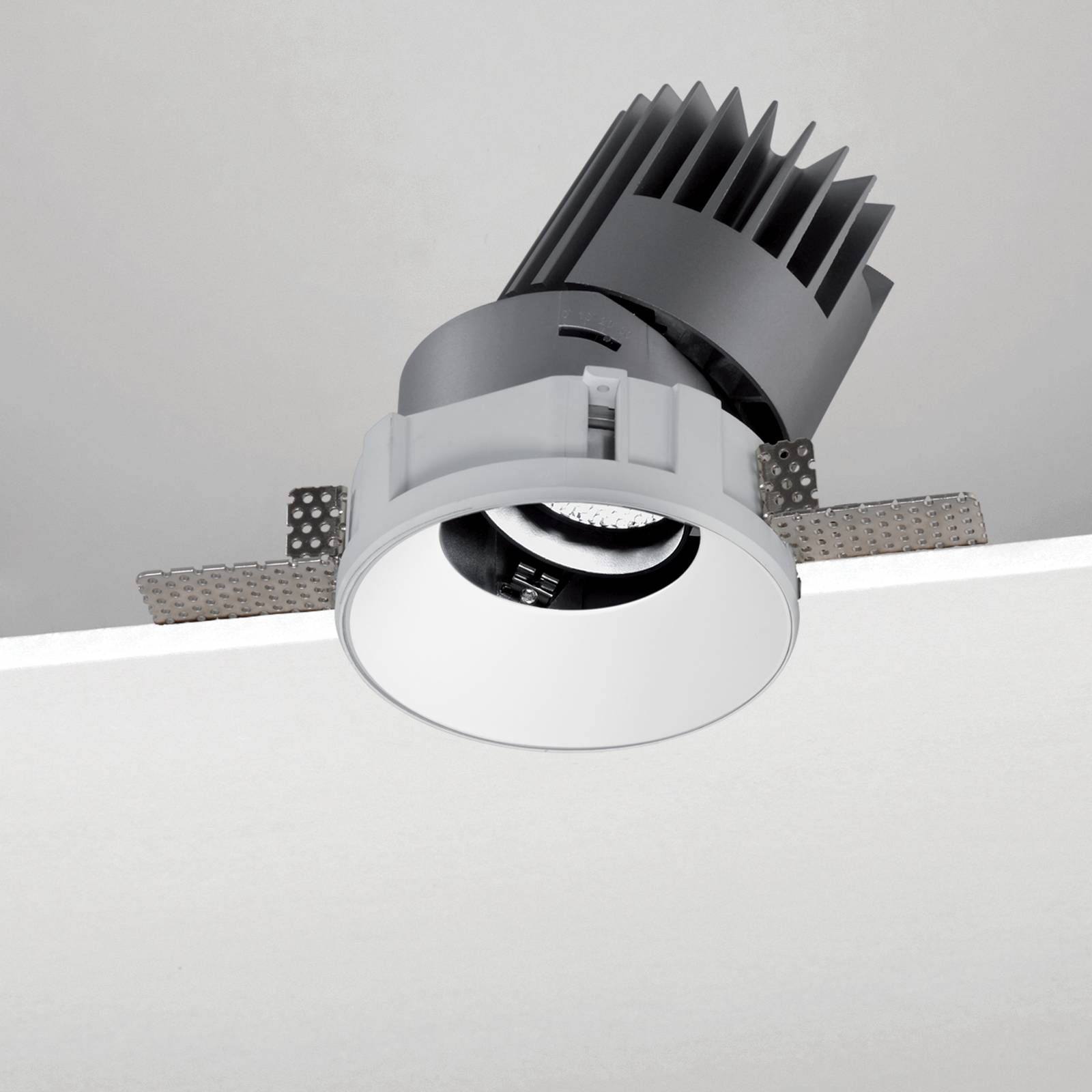 Incasso LED fisso o orientabile, tondo o quadrato, in n.5 misure, per installazione a soffitto. MM: LED COB CREE CRI>90. M0-M1-M2-M3: LED COB CITIZEN CRI>90 (range potenza: 4W-38W). Lifetime >50.000h (L70B10). Corpo in alluminio pressofuso. Modulo LED IP54 (M0-M1-M2-M3). Cornice in alluminio verniciato bianco con staffe di fissaggio regolabili. Riflettori in policarbonato disponibili in diverse finiture. Alimentatore incluso. Disponibili versioni dimmerabili e controllo remoto.