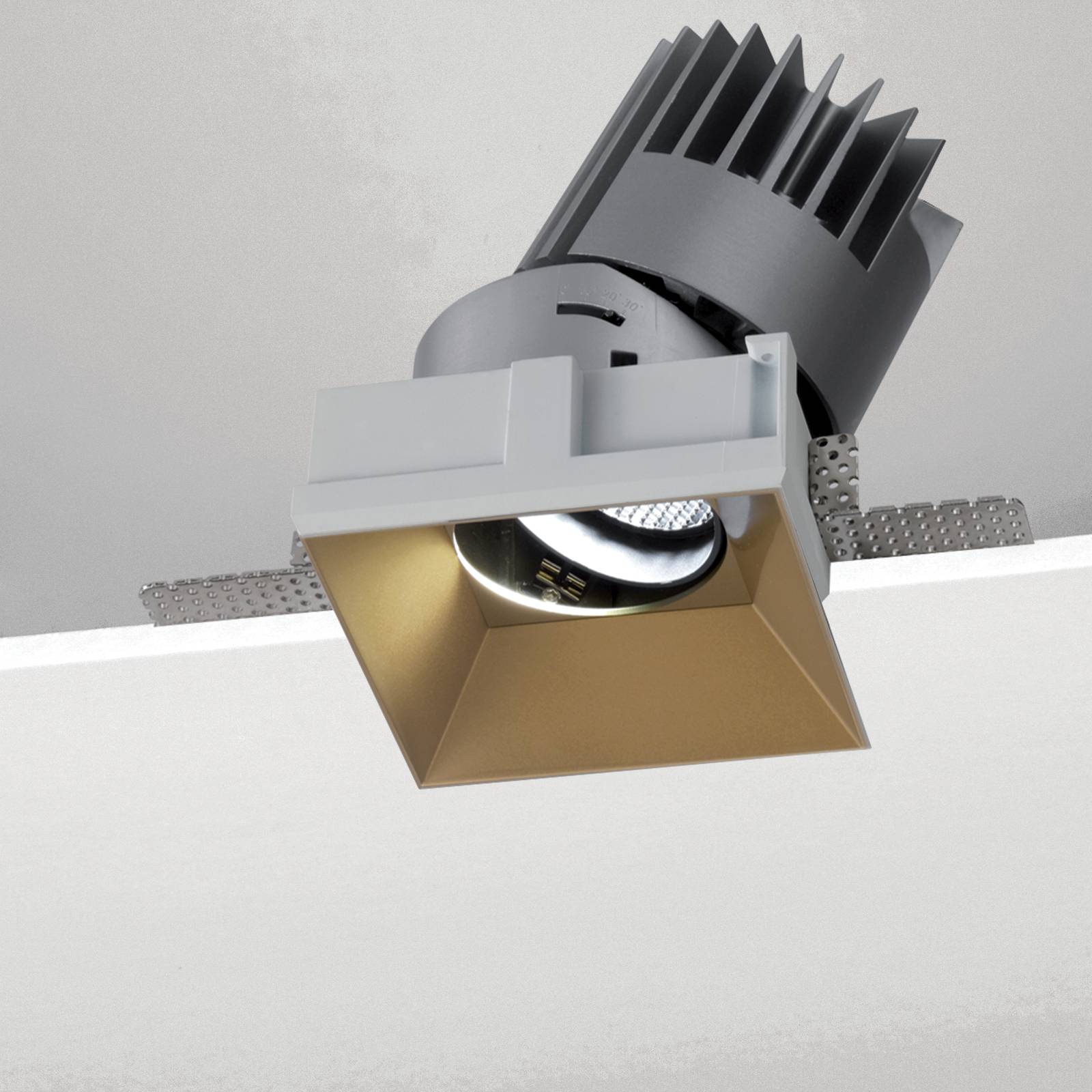 Incasso LED fisso o orientabile, tondo o quadrato, in n.5 misure, per installazione a soffitto. MM: LED COB CREE CRI>90. M0-M1-M2-M3: LED COB CITIZEN CRI>90 (range potenza: 4W-38W). Lifetime >50.000h (L70B10). Corpo in alluminio pressofuso. Modulo LED IP54 (M0-M1-M2-M3). Cornice in alluminio verniciato bianco con staffe di fissaggio regolabili. Riflettori in policarbonato disponibili in diverse finiture. Alimentatore incluso. Disponibili versioni dimmerabili e controllo remoto.