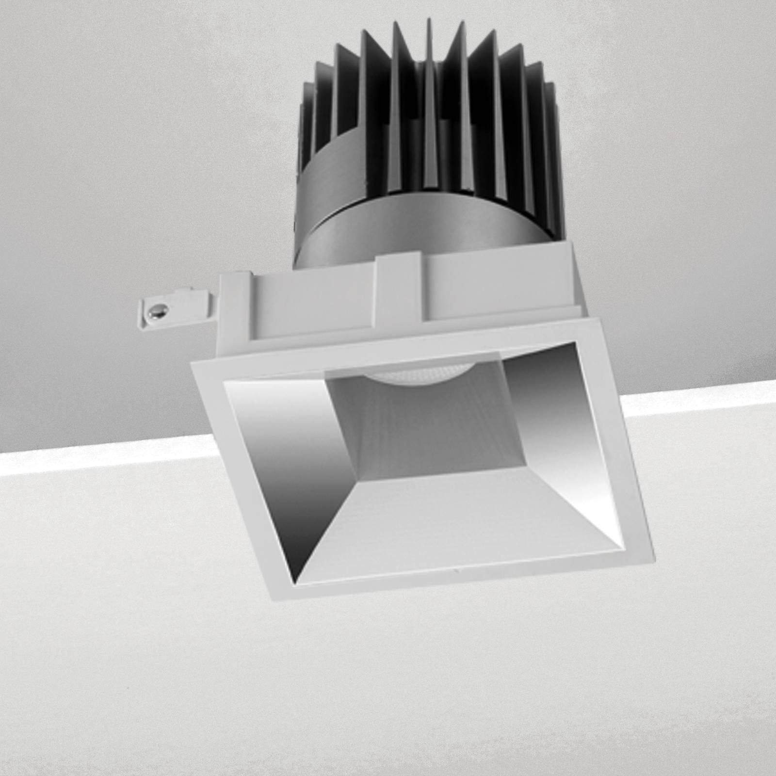 Incasso LED fisso o orientabile, tondo o quadrato, in n.5 misure, per installazione a soffitto. MM: LED COB CREE CRI>90. M0-M1-M2-M3: LED COB CITIZEN CRI>90 (range potenza: 4W-38W). Lifetime >50.000h (L70B10). Corpo in alluminio pressofuso. Modulo LED IP54 (M0-M1-M2-M3). Cornice in alluminio verniciato bianco con staffe di fissaggio regolabili. Riflettori in policarbonato disponibili in diverse finiture. Alimentatore incluso. Disponibili versioni dimmerabili e controllo remoto.